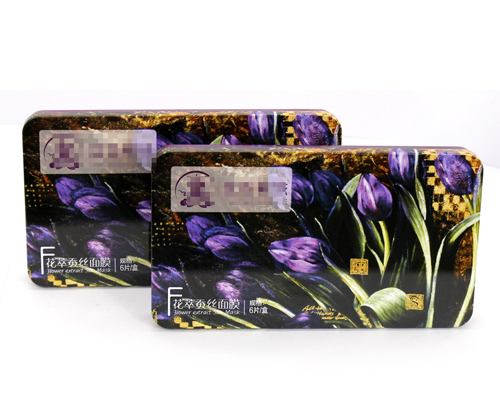 此款方形蠶絲面貼膜鐵盒包裝在印刷方面,鐵盒版面設(shè)計簡約大方,醒目,加深消費者對面貼膜產(chǎn)品品牌的宣傳。