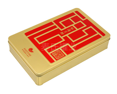 這款月餅鐵盒子,材質為的磨砂鐵料制成,具有凹凸感覺,鐵盒整體富有砂礫狀效果。在質量方面,具有優異的防潮耐蝕性能,保證盒內的月餅產品,不受潮發霉。鐵罐為內塞蓋設計,精巧的盒身搭配內塞蓋結構,方便消費者攜帶使用。鐵盒為簡約的過光油印刷處理,無明顯的印刷圖文處理,但可進行激凸工藝處理,可令鐵盒更為,大氣。