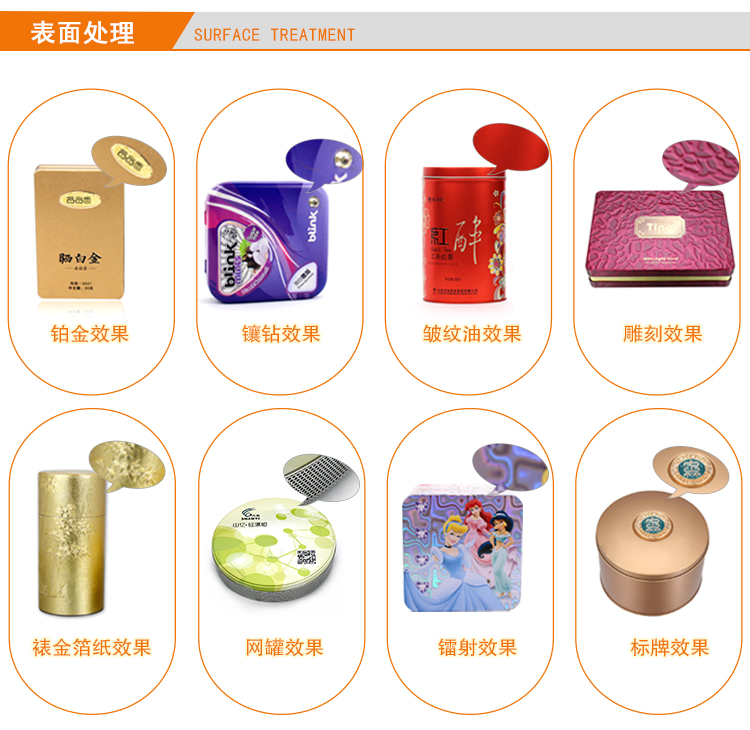 此款馬口鐵花茶通用茶葉鐵盒包裝為單面CMYK四色印刷處理,外過水性亮光油,內涂金油,過油目的不僅能提高鐵盒整體效果,具有強烈的金屬質感外,還對鐵盒印刷面形成一層致密的保護膜,對鐵罐刮花、防銹起到一定的防護作用。除了過光油、透明油外,客戶還可選擇過皺紋油、珠光油、爆炸油等。