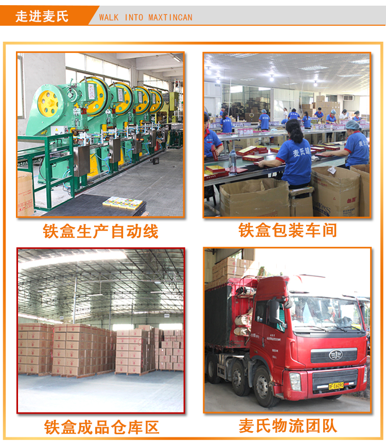 馬口鐵花茶通用茶葉鐵盒包裝定制工廠-麥氏罐業有限公司,擁有十八年的鐵盒包裝生產經驗,我司不斷完善鐵盒包裝檢驗體系與營銷服務體系的同時,為大益集團、八百秀才、龍潤茶、茂圣、品品香、正山堂、藝福堂等國內商家提供各種多樣、精美、實用、安全的馬口鐵盒包裝產品。公司擁有五百多臺制罐設備,三百多名訓練有素的操作工,五條進口自動化制罐線,按時完成客戶的大貨生產需求。
